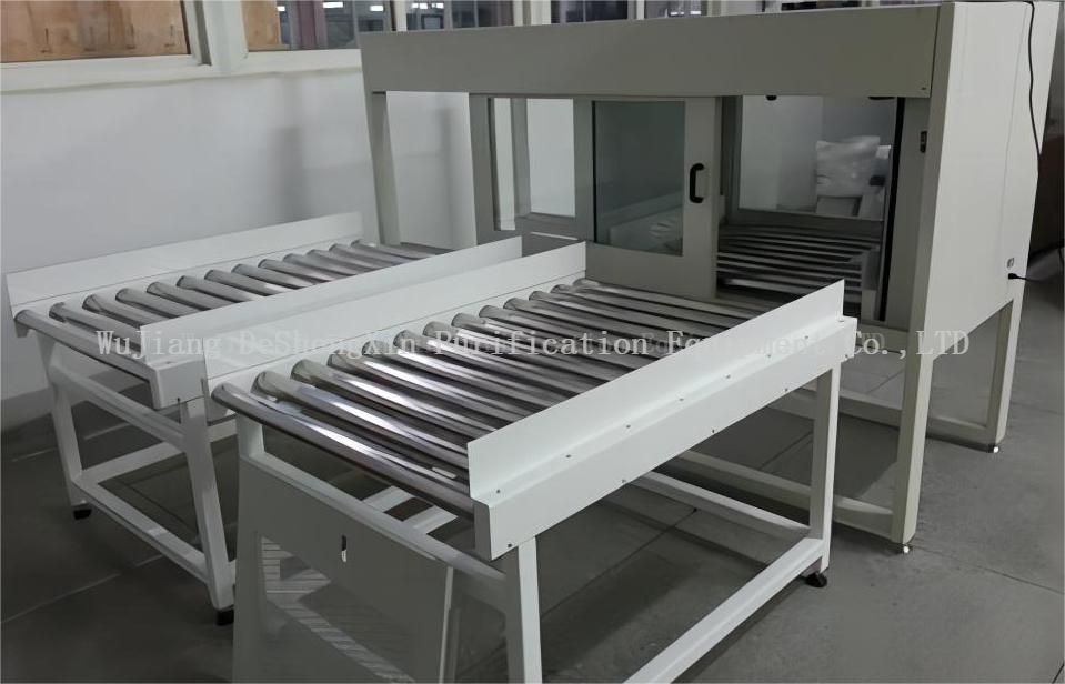 2。改善的清洁度: 风淋功能可以有效地去除物品表面附加的灰尘,颗粒和其他污染物,从而确保在转移过程中清洁并满足高清洁工作环境的要求。